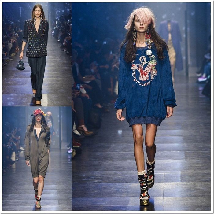 Далеко не все дизайнеры выпустили элегантные коллекции с приталенными одеждами. Например, Вивьен Вествуд (Vivienne Westwood) вдохновилась электронными 80-ми и создала коллекцию с довольно небрежными образами.