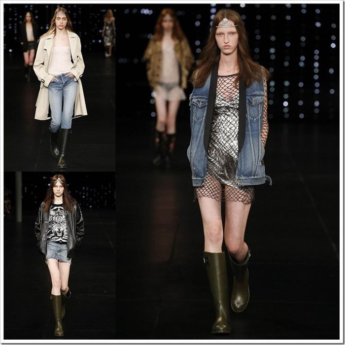 А вот специалисты модного Дома Yves Saint Laurent отдали дань 90-м, и выпустили коллекцию, где не обошлось без крупной сетки, бесформенных потёртых курток и обтягивающих брюк.